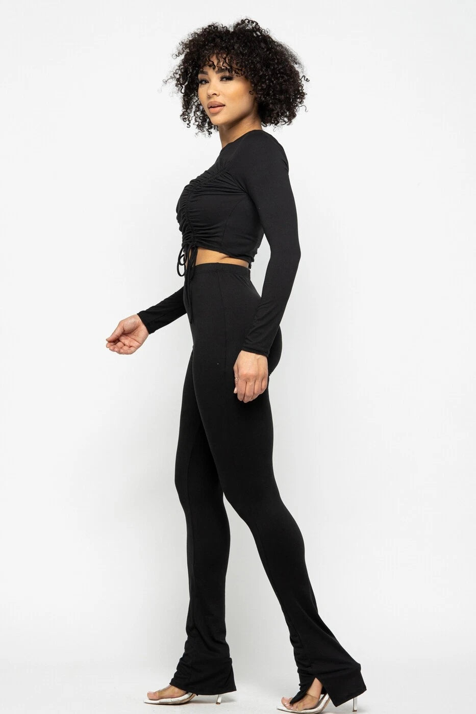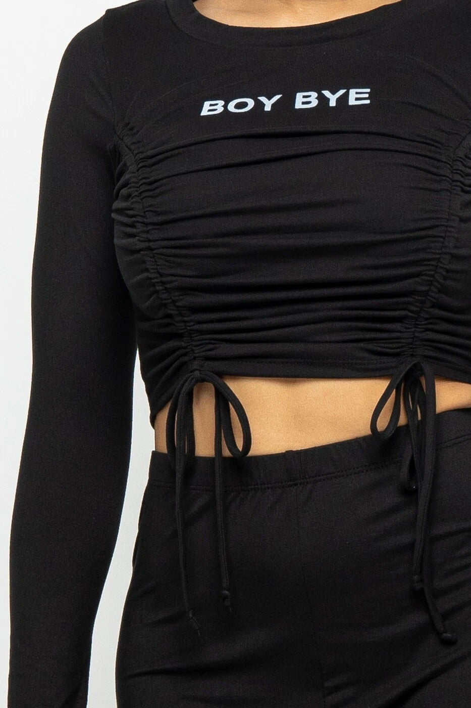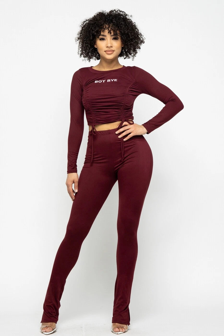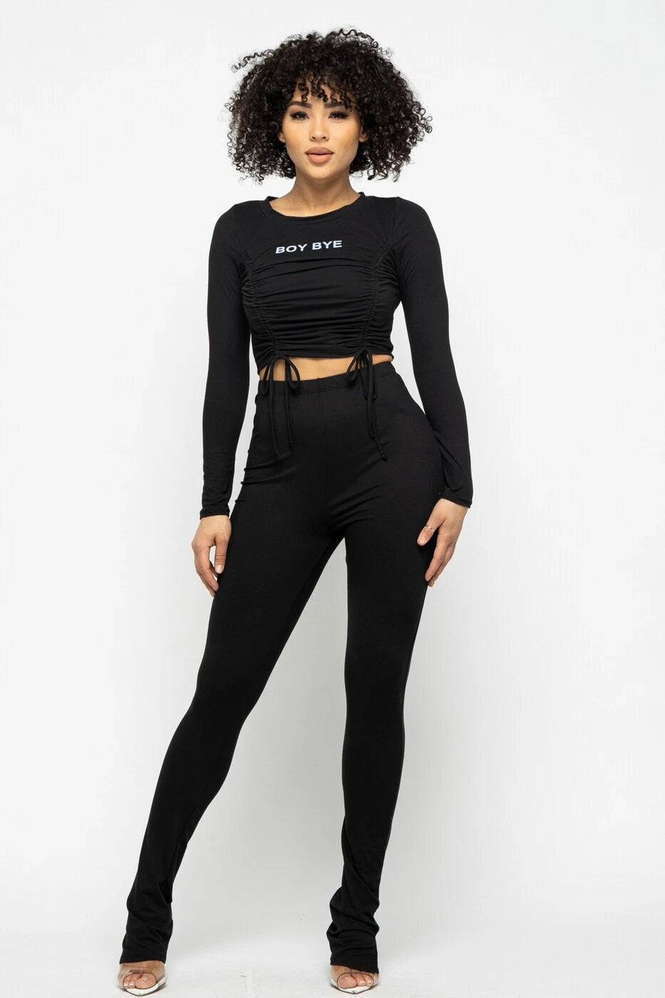 Boy Bye Set Crop Top with Front Tie Detail and Ankle Slit Leggings